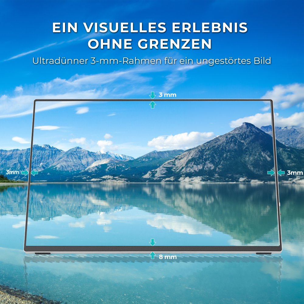 Das Design des M16 QHD-Monitors mit dem ultra-dünnen 0,1"-Rahmen maximiert die Anzeigefläche und bietet ein einzigartiges visuelles Erlebnis. Dieses minimalistische Design erhöht den ästhetischen Wert des Monitors und reduziert gleichzeitig ablenkende Elemente, sodass Sie sich voll und ganz auf Ihre Arbeit oder Unterhaltung konzentrieren können.