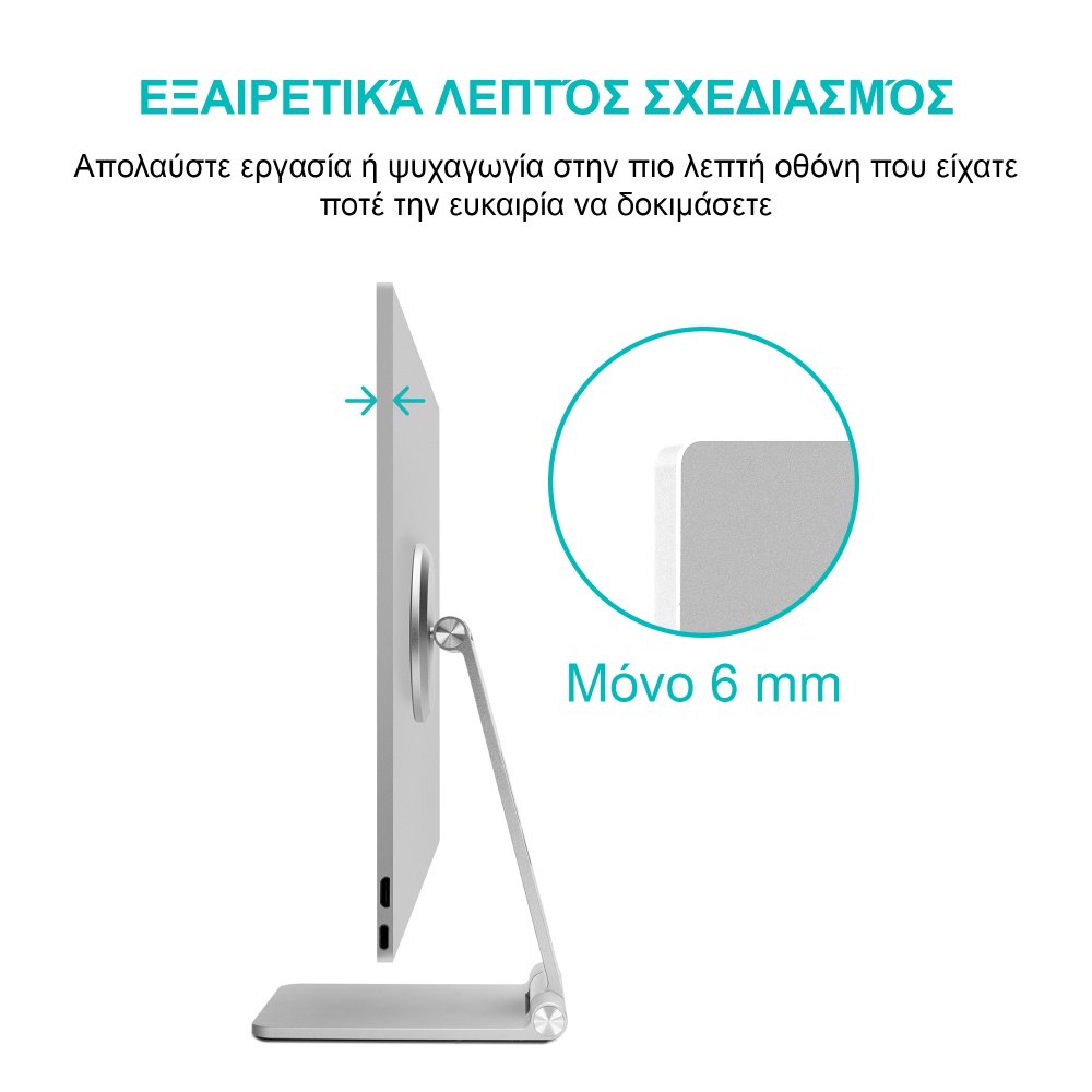 - Μαγνητική βάση για μια απόλυτα απρόσκοπτη στήριξη οθόνης