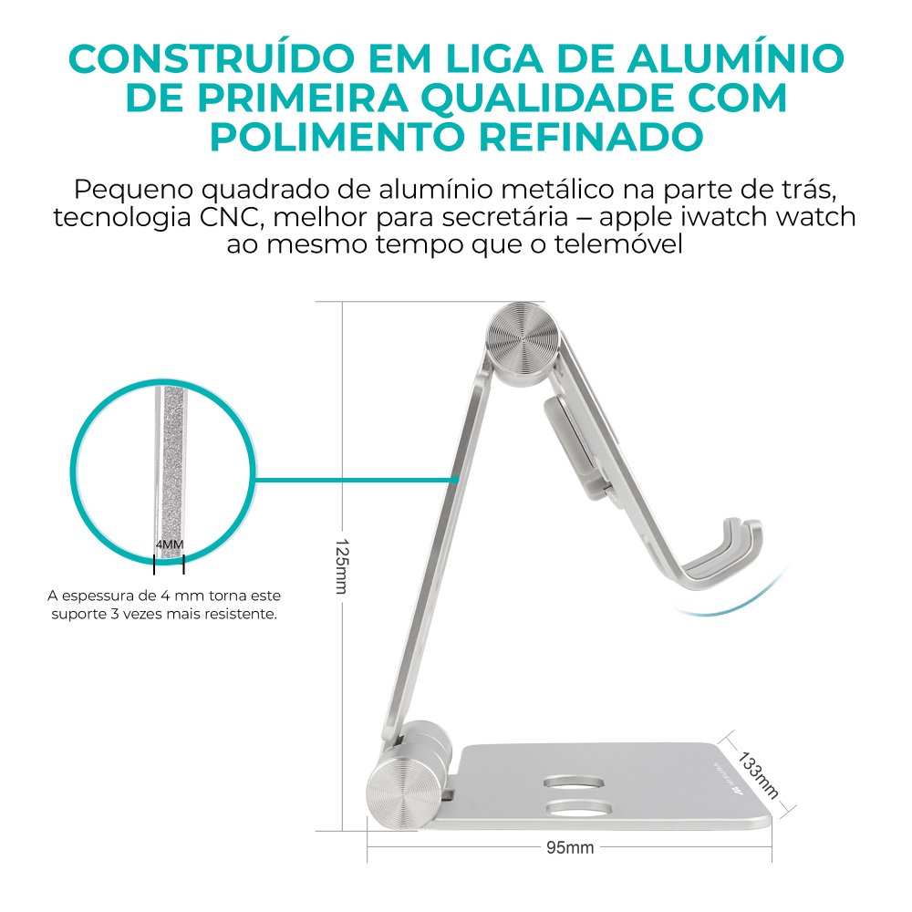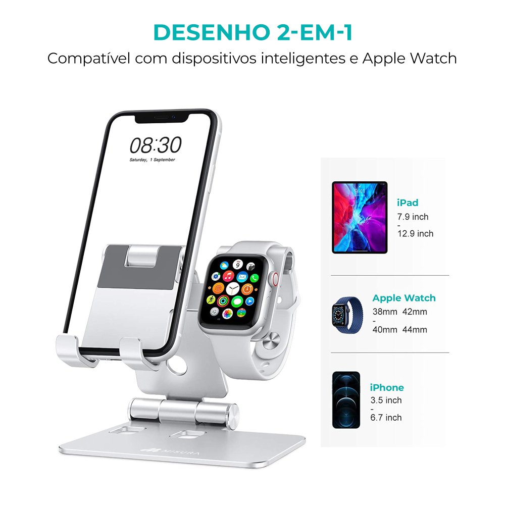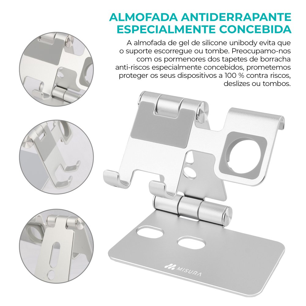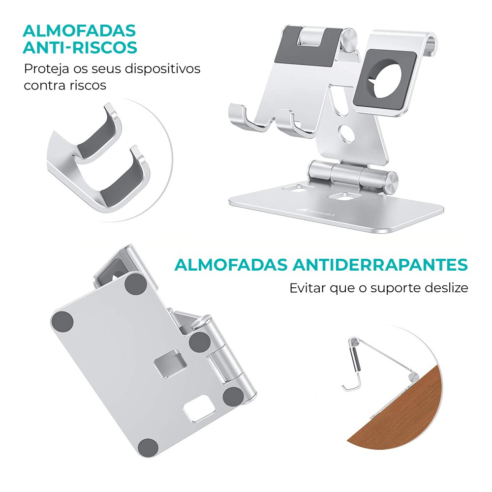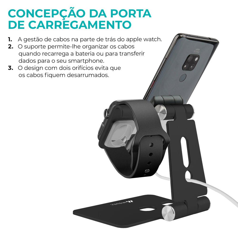 Suporte estável e ergonómico para utilização mais confortável do telemóvel e relógio